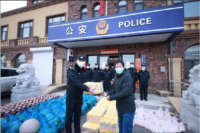 李宝发经理表示:抗击疫情是全社会的共同责任,没有“局外人”,我们决不做“旁观者”,舍弃小利,服务大局、回馈社会是我们企业的发展理念,疫情面前,分局广大公安干警无畏风险、冲锋在前、迎难而上、奋勇拼搏精神,我们深感敬佩和感激,正是有你们的存在,我们才能够安心生产发展,正是有你们的辛苦付出,人民群众才能够安心放心,你们是人民群众的忠诚守护者、是保障社会和谐稳定的坚定践行者。我们坚信,只要全社会共同努力,就一定能打赢疫情阻击战,胜利者一定属于我们。
