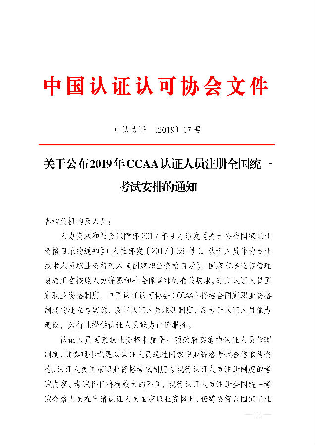 关于2019年认证人员注册全国统一考试安排的通知.pdf