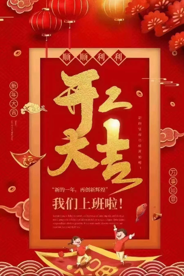 今日我们开工啦,欧希蒂全体员工祝愿各位客户,在新的一年里生意兴隆,业绩长虹。